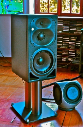 Neumann KH 420 auf Lautsprecherstäder OVATION & Rack REVOLUTION black Edition