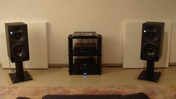Die Ständer für die Geithain 901k1 sind termingerecht eingetroffen. Zusammen mit den Lautsprechern erfolge dann am vergangenen Freitag die Lieferung in die Schweiz. Ich möchte mich an dieser Stelle nochmals herzlich bei Ihnen für Ihre Top Arbeit und den guten Service bedanken. Die Ständer sind sehr sorgfältig gemacht und passen wunderbar. Das leicht nach hinten versetzte Rohr macht sich auch sehr gut und verleiht mehr Leichtigkeit (wenn man von bei diesen Schwergewichten überhaupt von Leichtigkeit sprechen kann). Ich bin mir fast sicher, dass dieses "Design IV" für die 901 auch bei anderen Kunden Anklang findet.